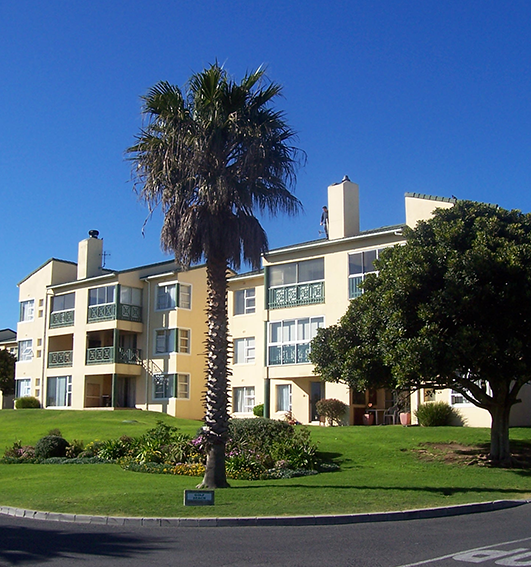 Three sections of semi-highrise blocks of apartments with several single storey cabanas mere meters away from the waves. The entire complex faces the sea and, thus, offers stunning views of False Bay. A resort style swimming pool area for the sole use of residents completes the picture.